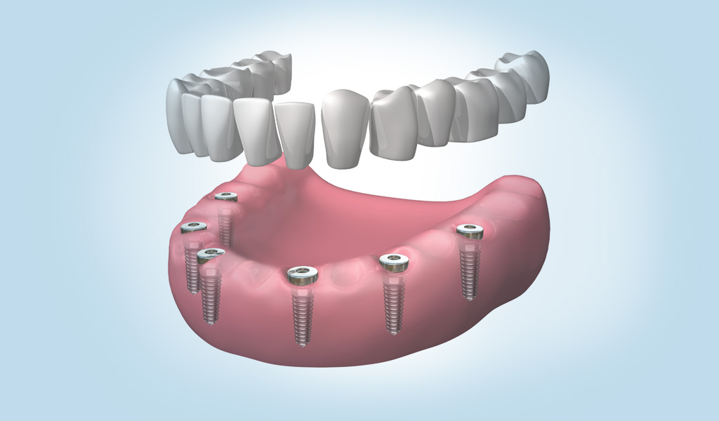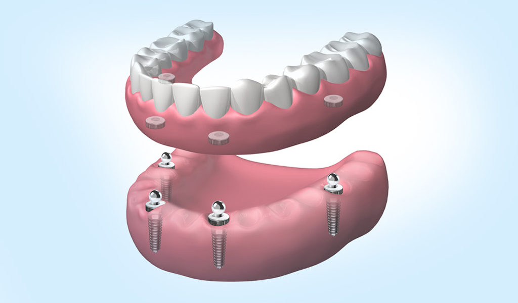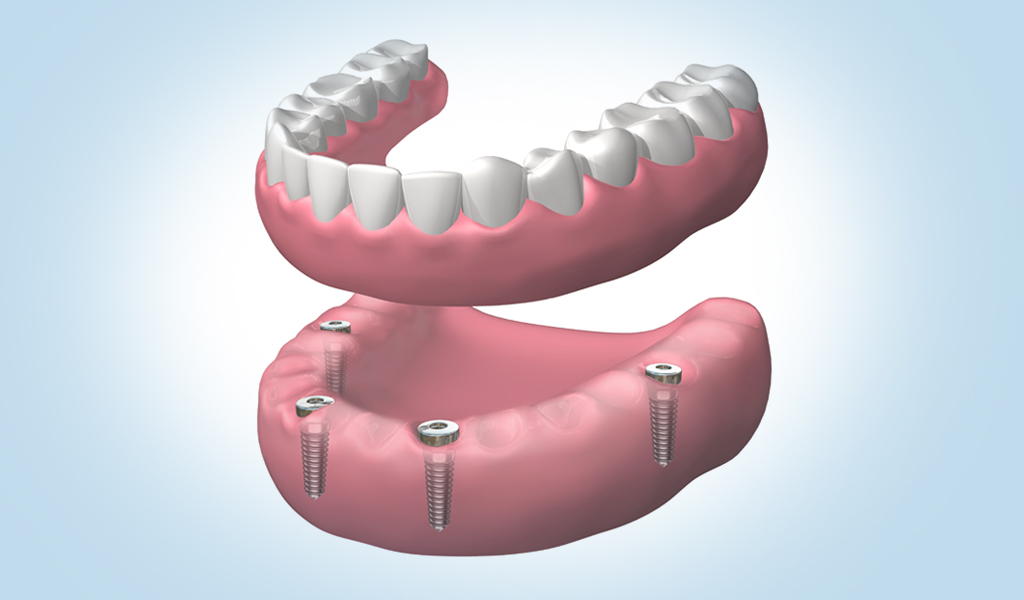 Se trata de dentaduras de resina fijadas con 4 o 6 implantes dentales. Es una opción recomendada para pacientes que han usado dentadura postiza durante mucho tiempo. Más económica que la dentadura de porcelana.