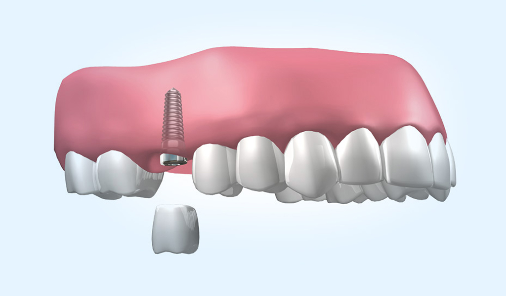 Implante de titanio que sustituye la raíz perdida del diente original. Se integra con el hueso de forma biocompatible. Máxima estética y funcionalidad, especialmente si la corona se confecciona con zirconio, un material estético sin metal.
